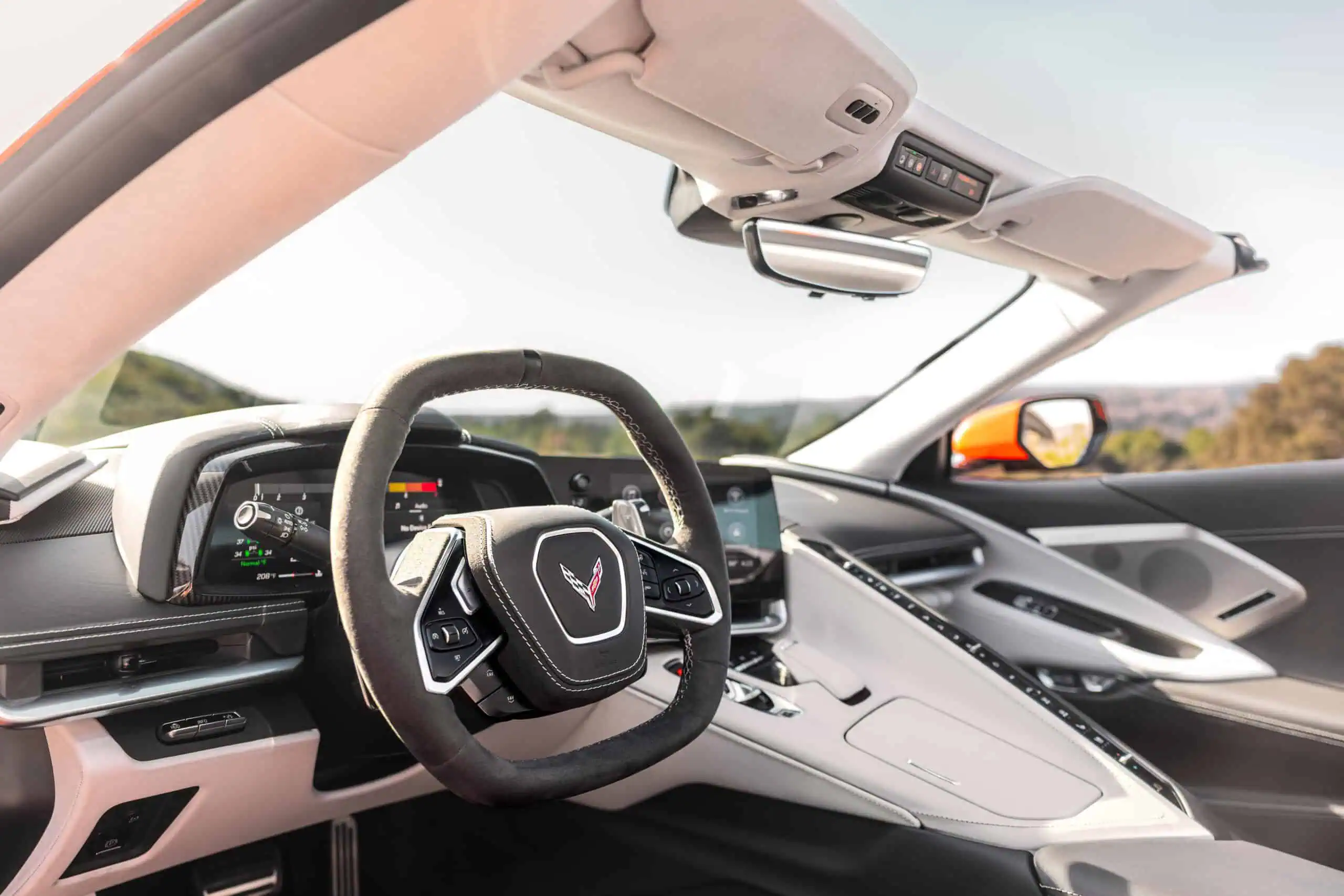 Inside, the 3LT trim provides the most luxurious Corvette interior available, featuring carbon fiber interior trim, premium leather surfaces, and a suede microfiber wrapped steering wheel. The driver focused cockpit blends performance and comfort with advanced digital displays and premium materials throughout the cabin.